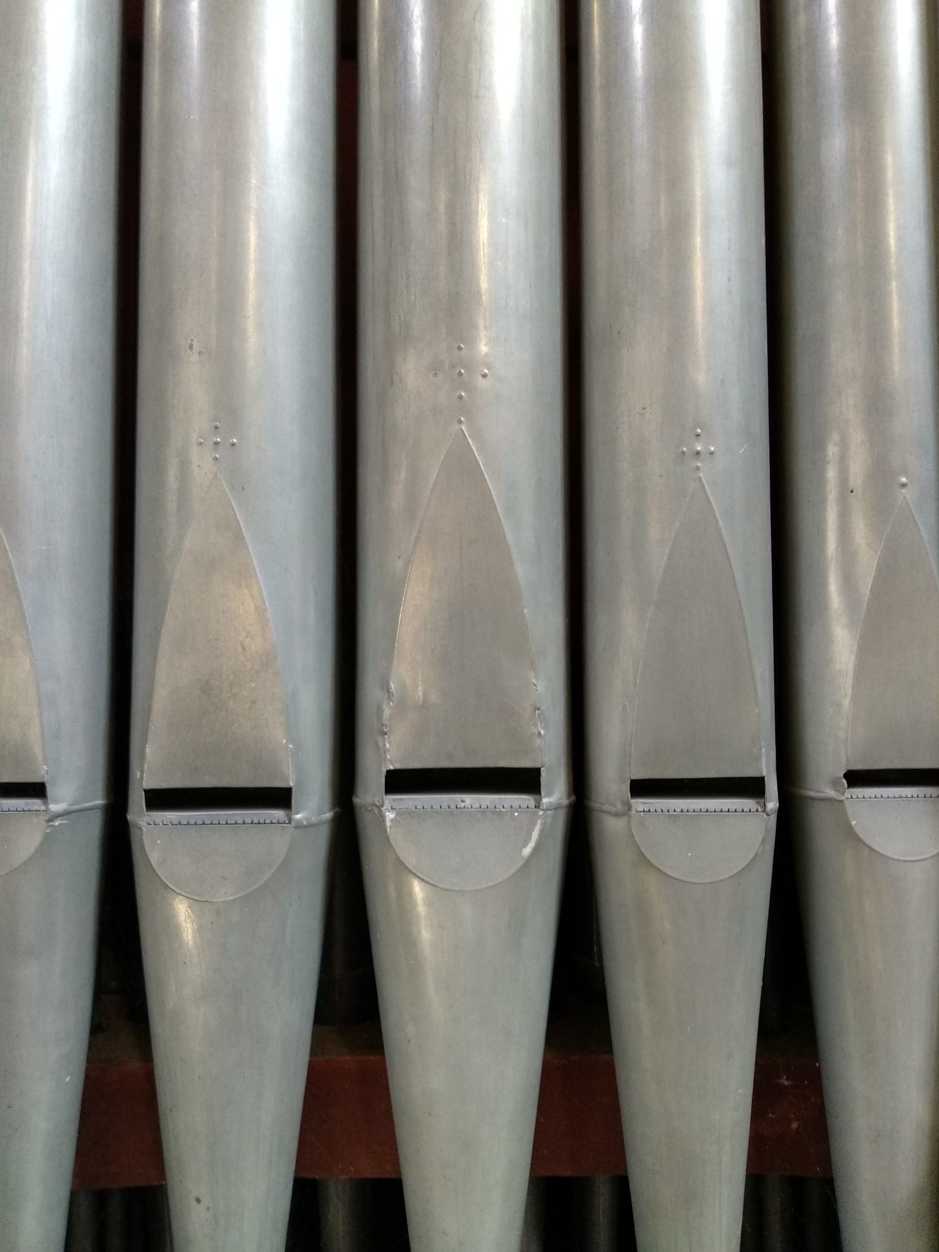 The 8′ wooden Principale II is divided into bass and treble between the notes C3 / C#3, it shares the bass pipes with the 8′ Principal I; the treble section pipes can be tuned slightly sharp or flat in order to get the effect of Voce umana.