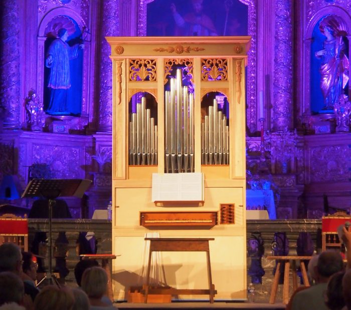 The instrument was completed in spring 2022 and the final voicing took place with the collaboration of my colleague Marco Fratti and the organist Bernard Foccroulle in the church of Monte San Giovanni. The inauguration took place in France, at the end of July 2022, in the context of the Festival Baroque de Tarentaise with two concerts held by the Ensemble InAlto (Conflans and Villaroger).