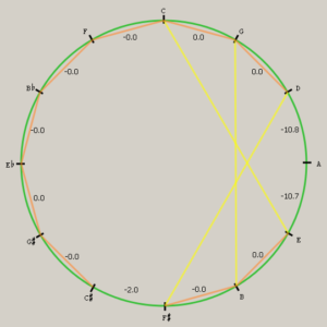 La purezza delle terze Re-Fa# e Sol-Si, delle quinte in successione discendente Do-Fa-Sib-Mib-Lab-Reb≡Do# e della quinta Si-Fa# garantisce che l’ultima concatenazione del ciclo Fa#-Do#≡Reb sia temperata di uno schisma.