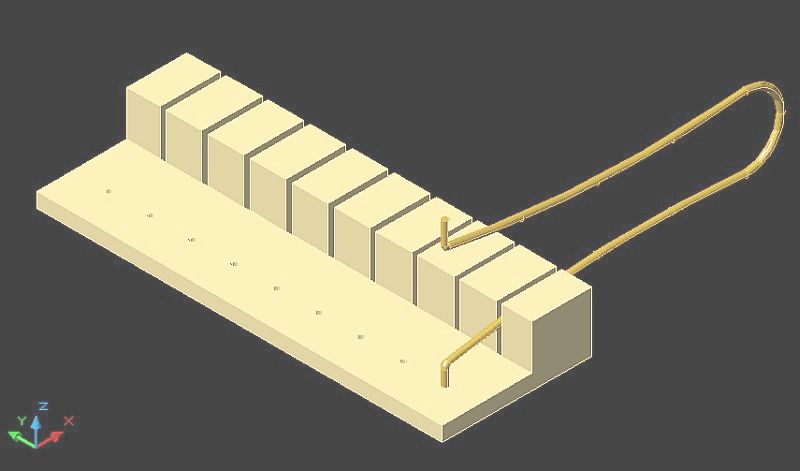 Dopo aver costruito le molle si dovranno creare le punte per ancorarle al fondo della secreta e ai ventilabri. È possibile evitare questa procedura, se si adotta una guida “a pettine” per le molle, che le mantenga ben distanziate e ne impedisca la rotazione. Ciò però presuppone che si conoscano esattamente le posizioni dei ventilabri sul somiere. Per costruire questa guida serve un listello di faggio o di rovere, ben dritto e squadrato, lungo quanto la secreta, di sezione 20×50 mm. Quando si saranno collocati i ventilabri nella posizione definitiva, vi si appoggerà sopra questa barra trasversalmente in prossimità delle tacche ricavate nel dorso dei ventilabri per alloggiarvi le molle. Se ne segnerà la posizione. Con una punta da 2 mm si foreranno gli alloggi per le molle, senza trapassare lo spessore ma fermandosi a 3 mm dall’uscita (dunque affondando per 17 mm). Poi con una lama sottile si taglieranno delle feritoie larghe 2 mm e profonde 15 mm, in cui passerà un braccio delle molle. Con la fresa o con la sega da banco si ricaverà nel listello uno scalino spesso 5 mm e profondo 30 mm lungo il lato con i fori. Questa barra dovrà essere avvitata al fondo della secreta e collocata parallelamente al fronte del somiere, in modo che le punte delle molle alloggino stabilmente nel foro, senza piegarsi quando messe in tensione e in modo che il braccio flettendosi non tocchi la barra.